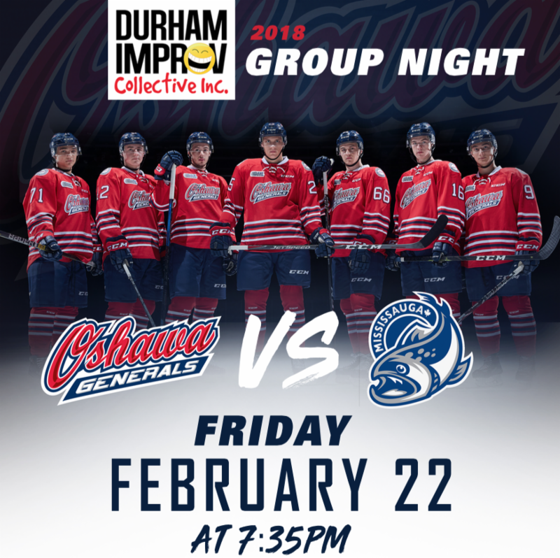 Save $5 off the regular ticket price!Friday, Feb. 22nd is our group night as the Generals face off against the Mississauga Steelheads! Contact us for your $20 tickets! $5 from every tickets goes to help fund our free community programs! E-mail us with the # of tickets you need! info@durhamimprov.com The winner of 2 tickets to the 905 Comedy Festival is.... Lisa Abbott!Congratulations! You have won 2 tickets to the show of your choice at this year's 905 Comedy Festival! Thank you to everyone for being on our e-mailing list! We randomly draw from our list of subscribers and next time it could be you!